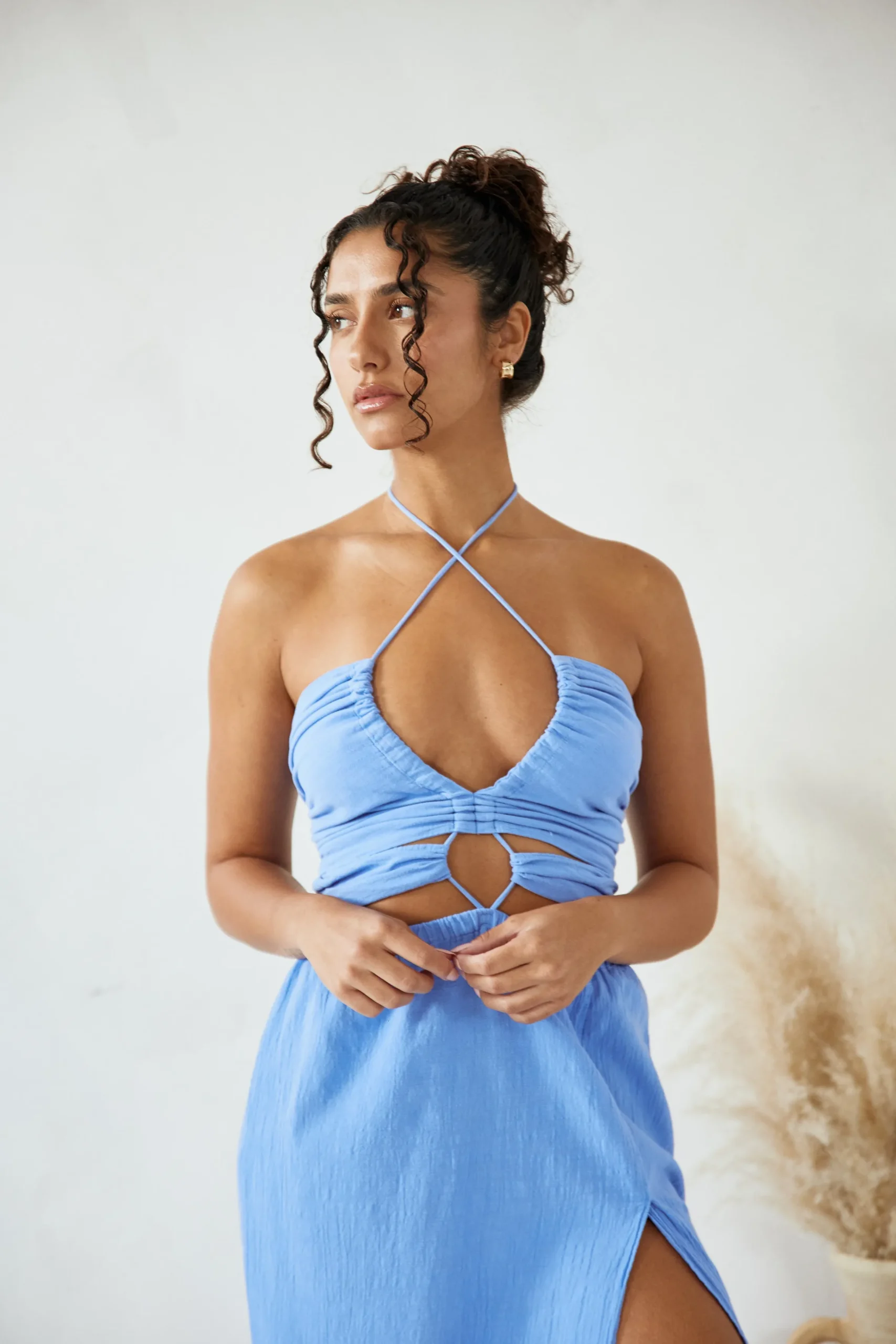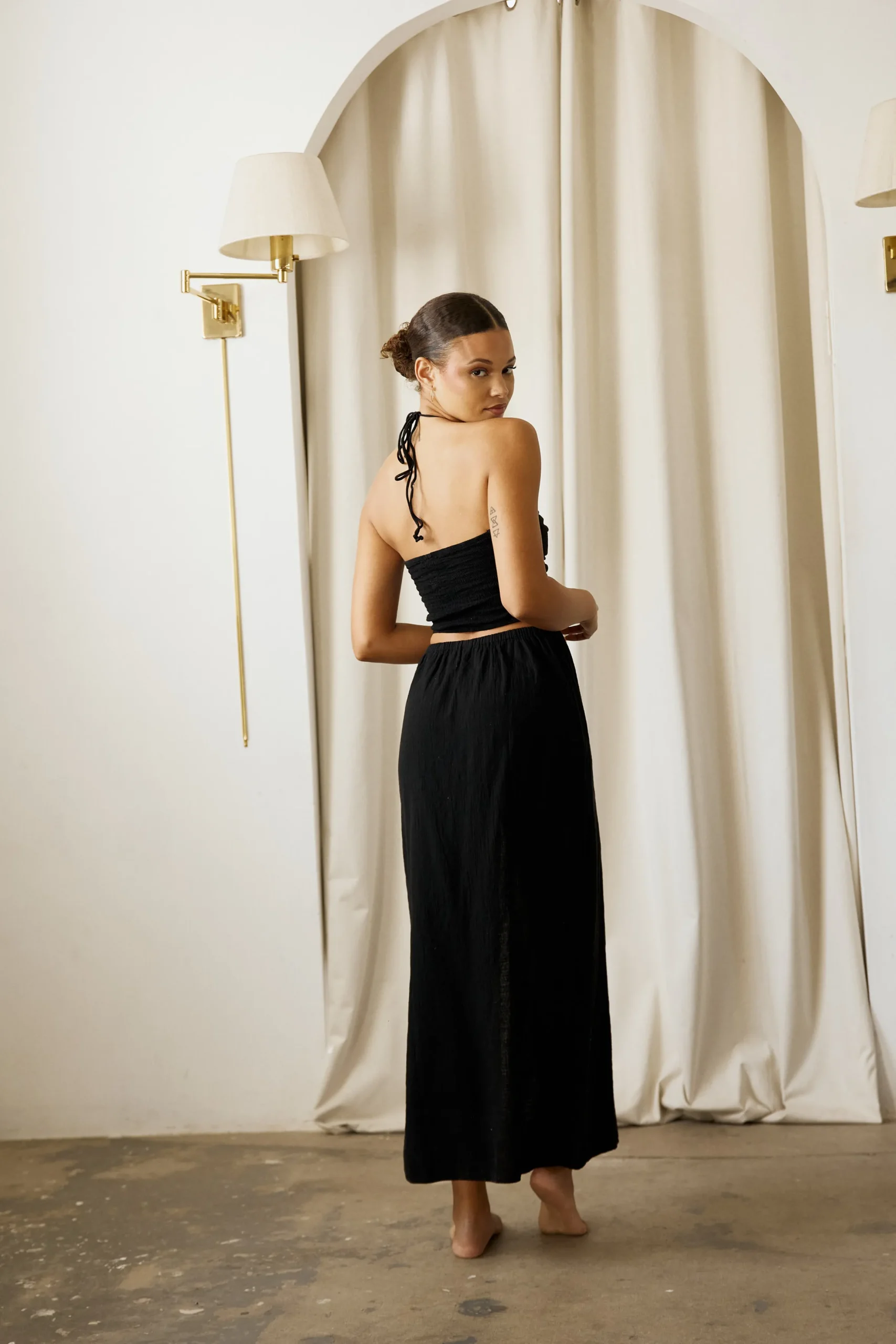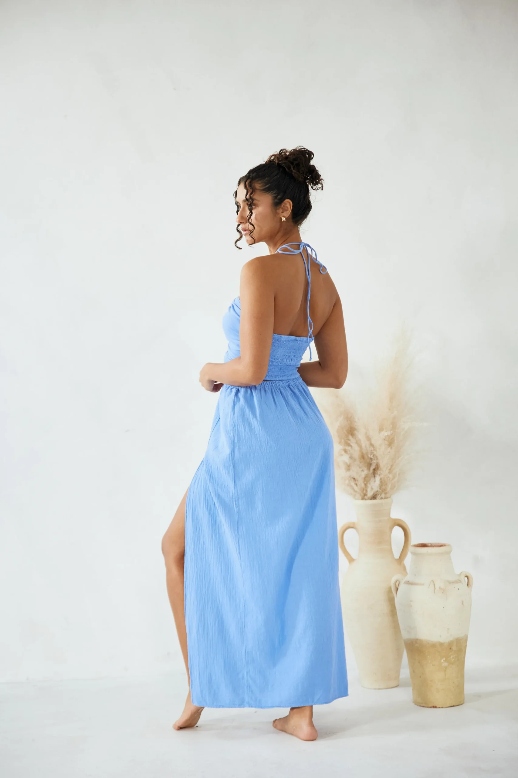 The perfect dressfor a night out or special event, the Andrea Dress is made from a high quality cotton fabric. It features an adjustable front, elastic back and a slit along the front. This piece can be styled for many looks. Style itup for your next event!