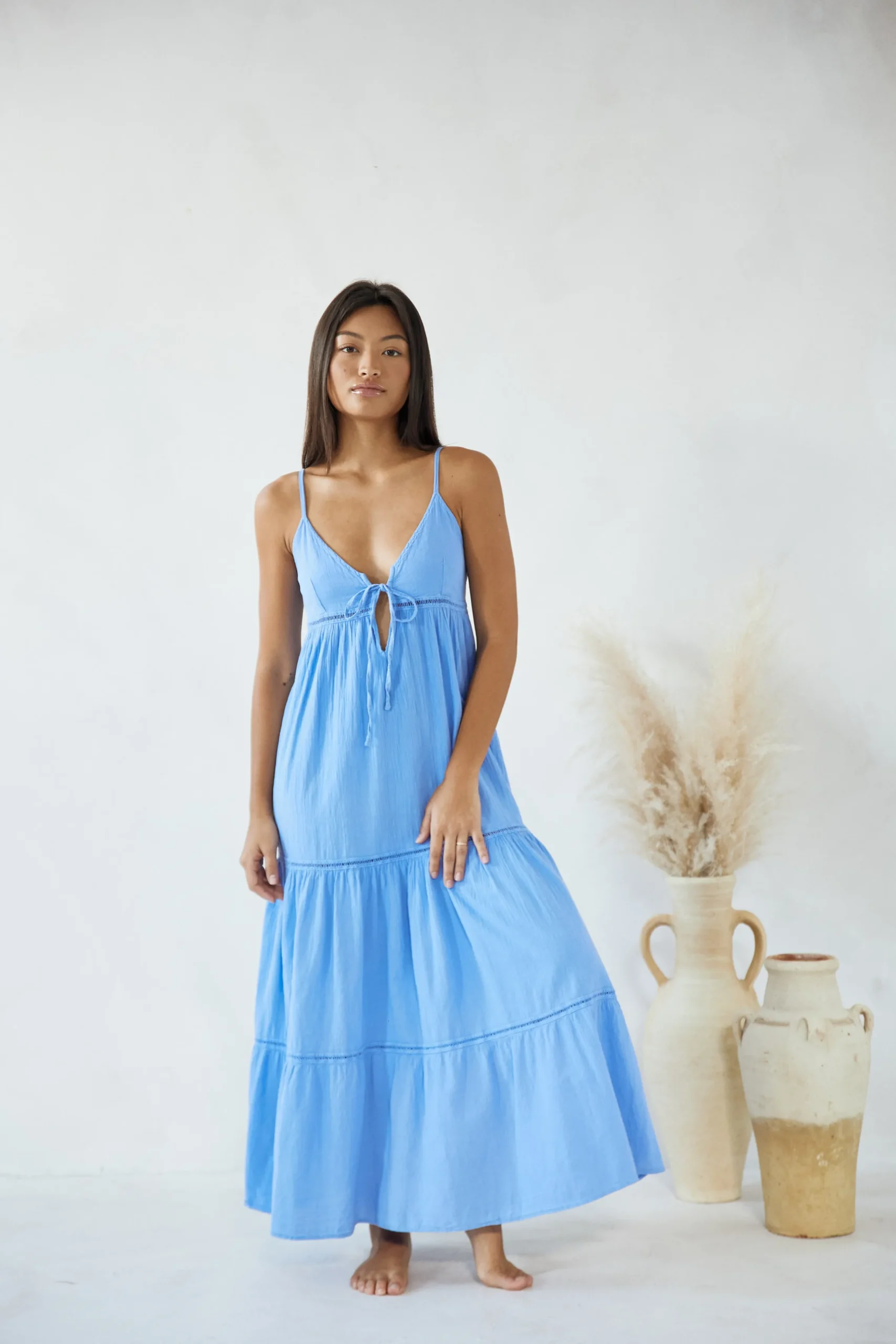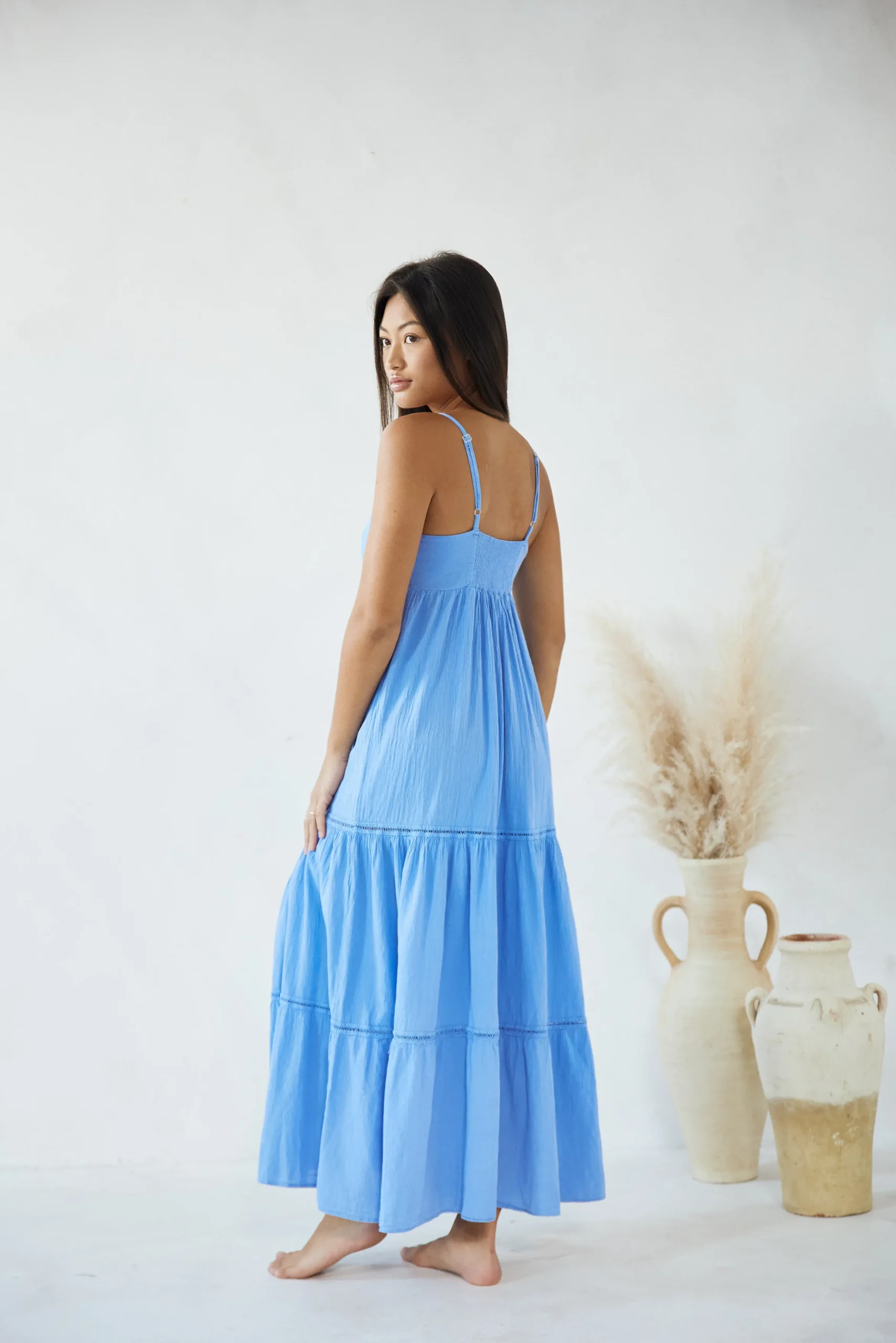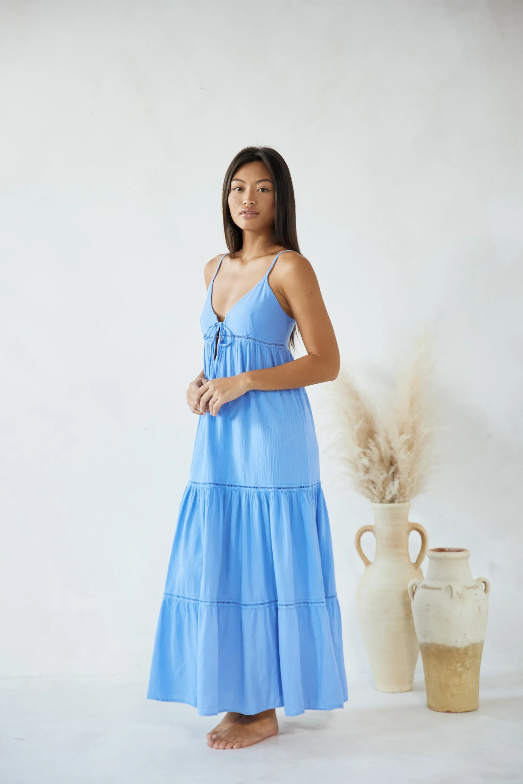 From beach to lunch! The AnetaDress is made from a lightweight cotton fabric with a crochet detail.It is a flowydress featuring adjustable straps and subtlecrochet detail throughout.Pair with sandals for an effortless classy look.