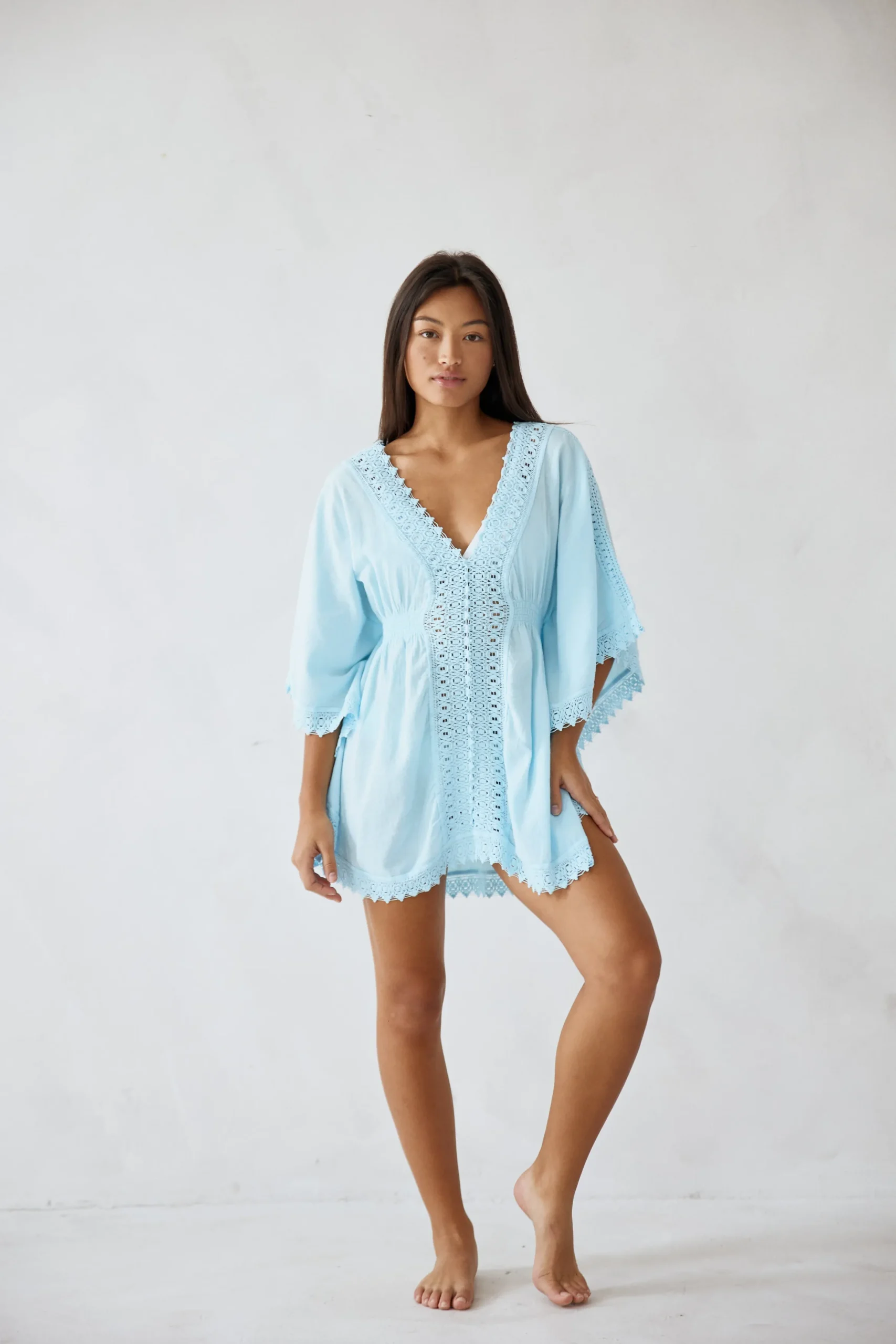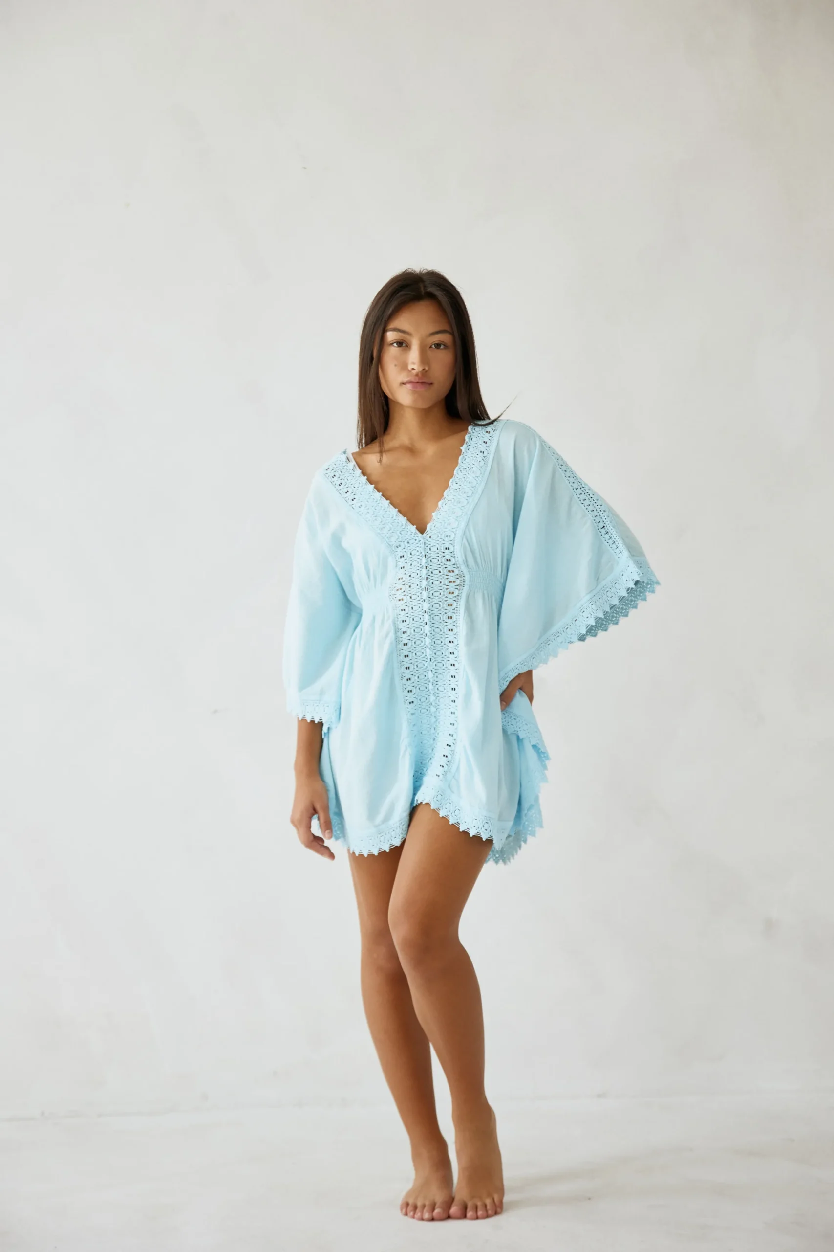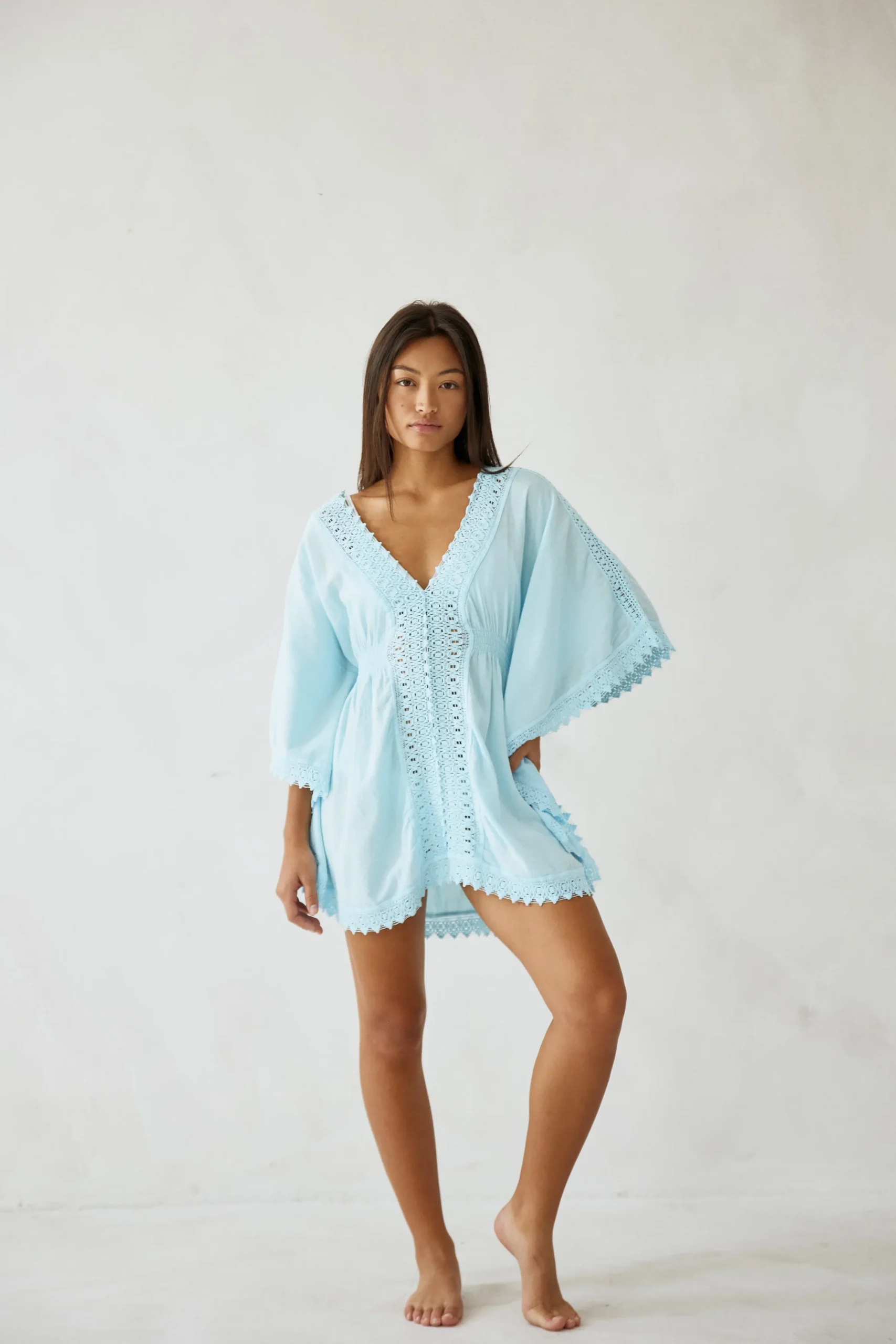Your go-to chic beach cover up! The Aqua Cover Up is made from a lightweight cotton fabric and features a deep V-neck, crotchet detail, and leg slits. Ideal for wearing over a swimsuit on your next beach day!