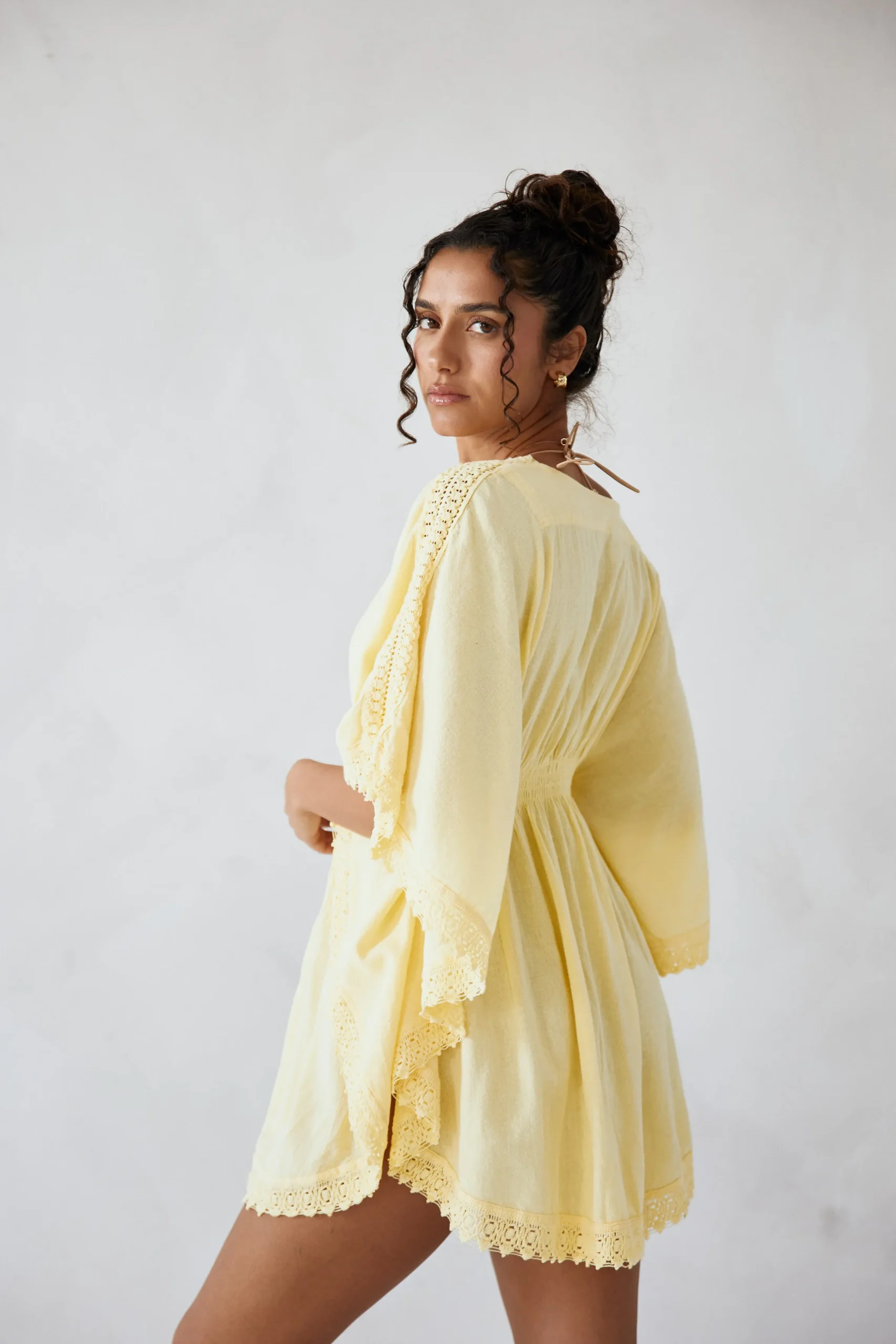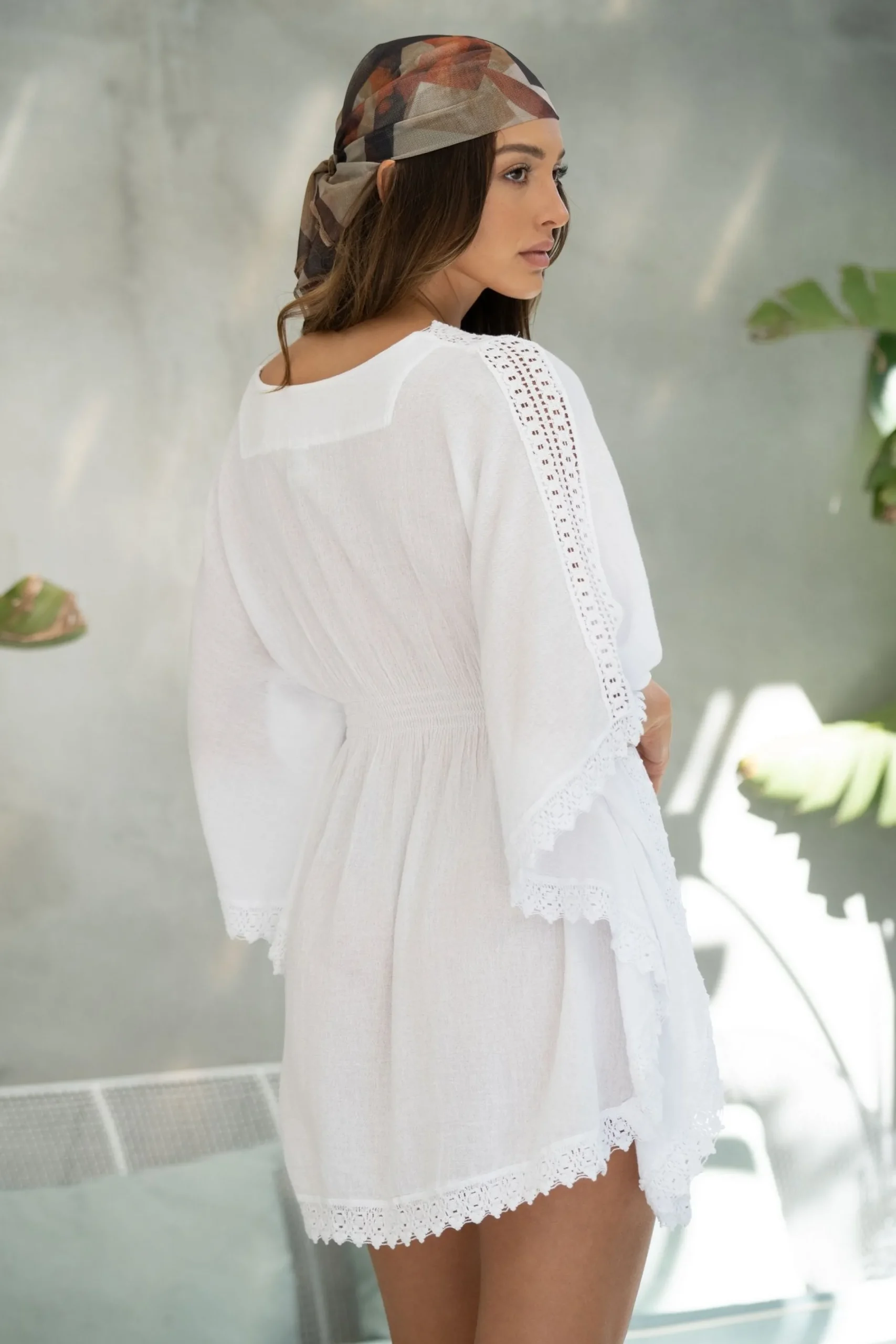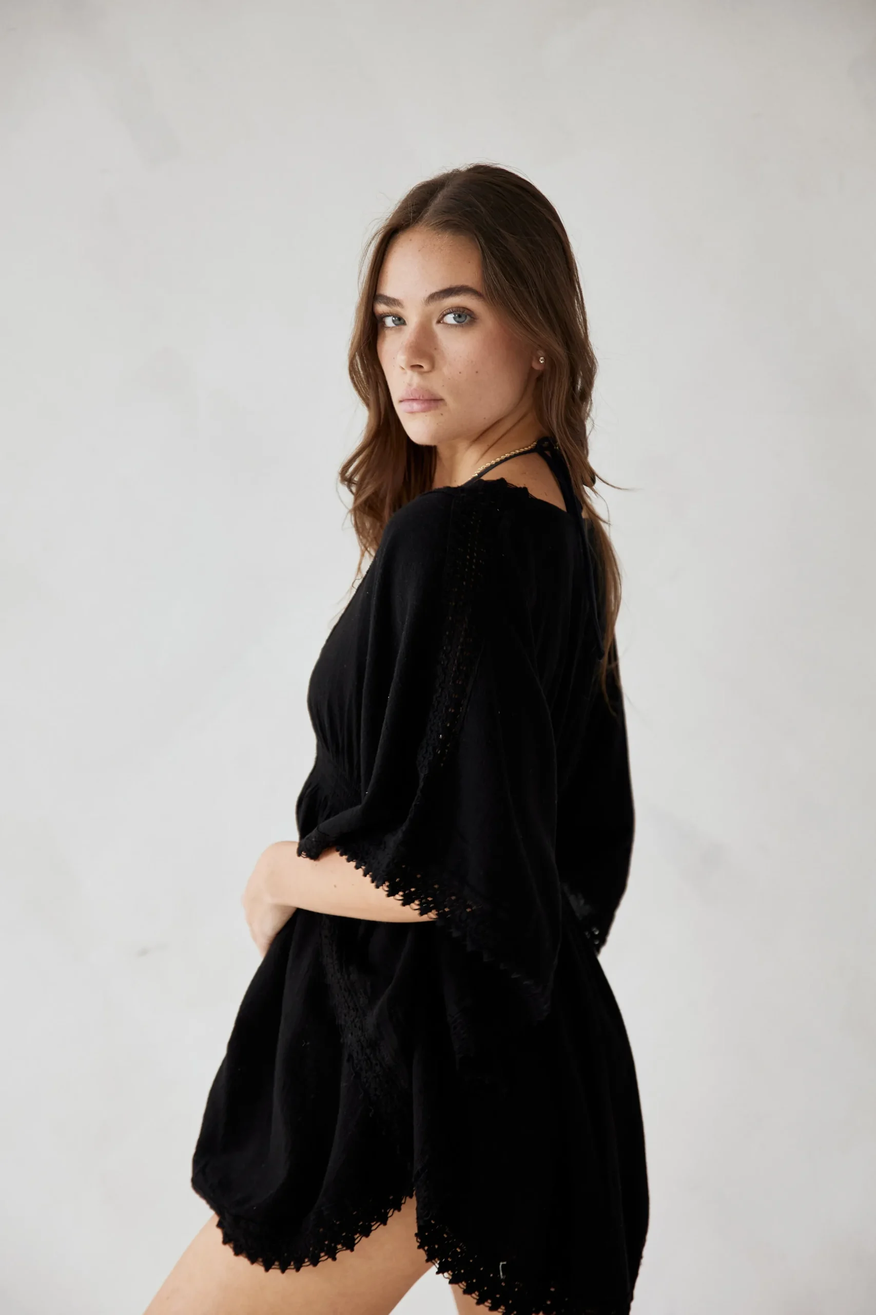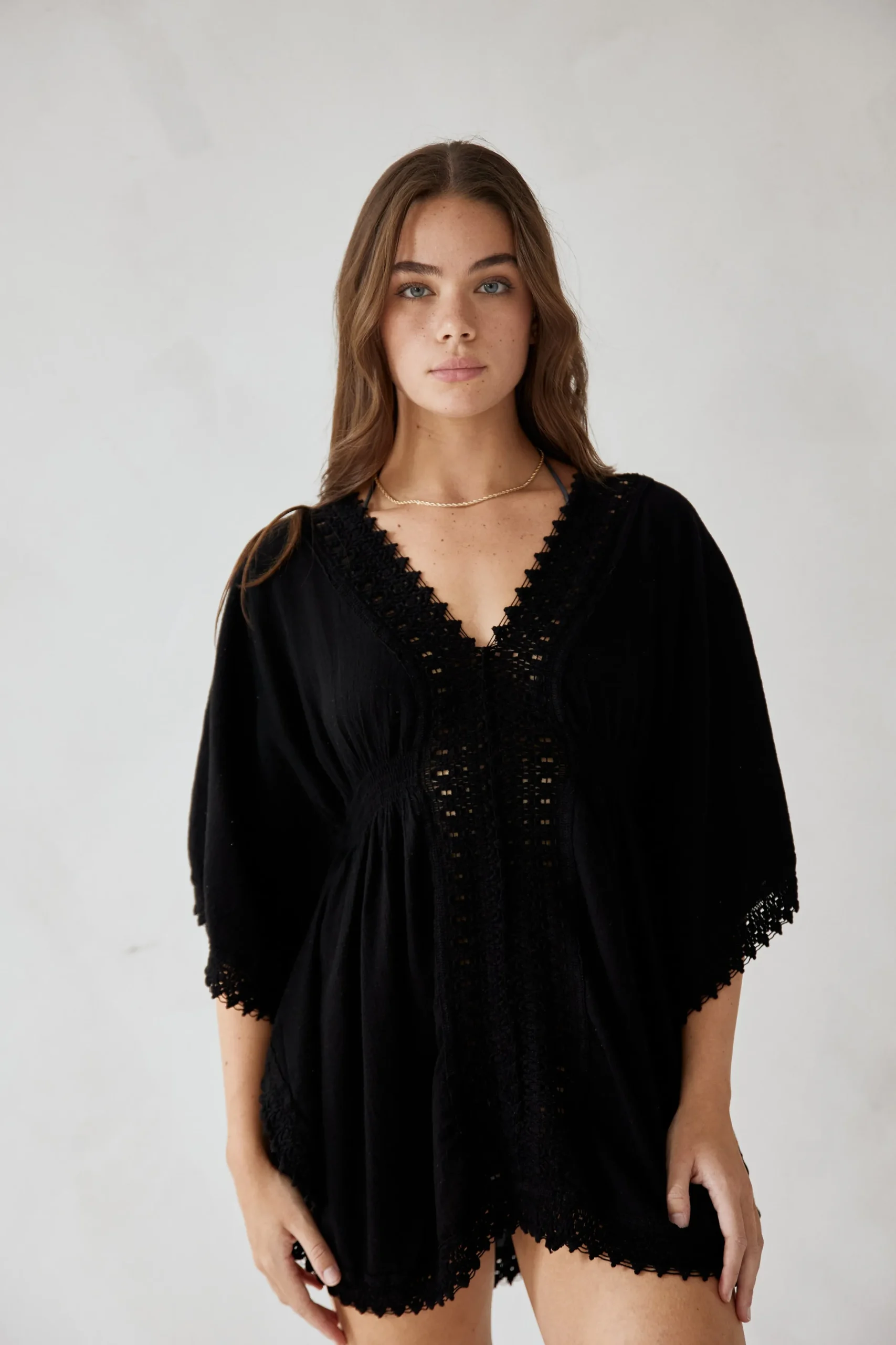 Your go-to chic beach cover up! The Aqua Cover Up is made from a lightweight cotton fabric and features a deep V-neck, crotchet detail, and leg slits. Ideal for wearing over a swimsuit on your next beach day!