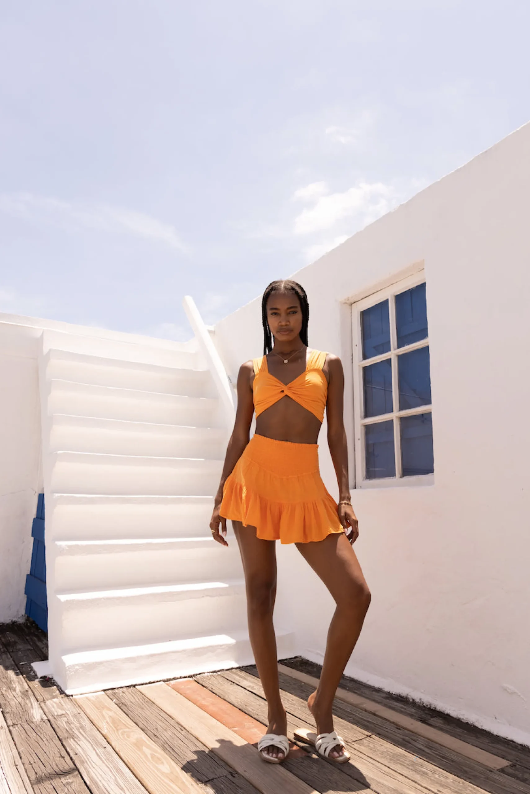 Your dream skirt has entered the chat! The Chloe Skirt is made from a high quality cotton fabric. This mini style features an elastic waist, a tiered skirt, and connected shorts underneath. Perfect for brunch or your next vacation!