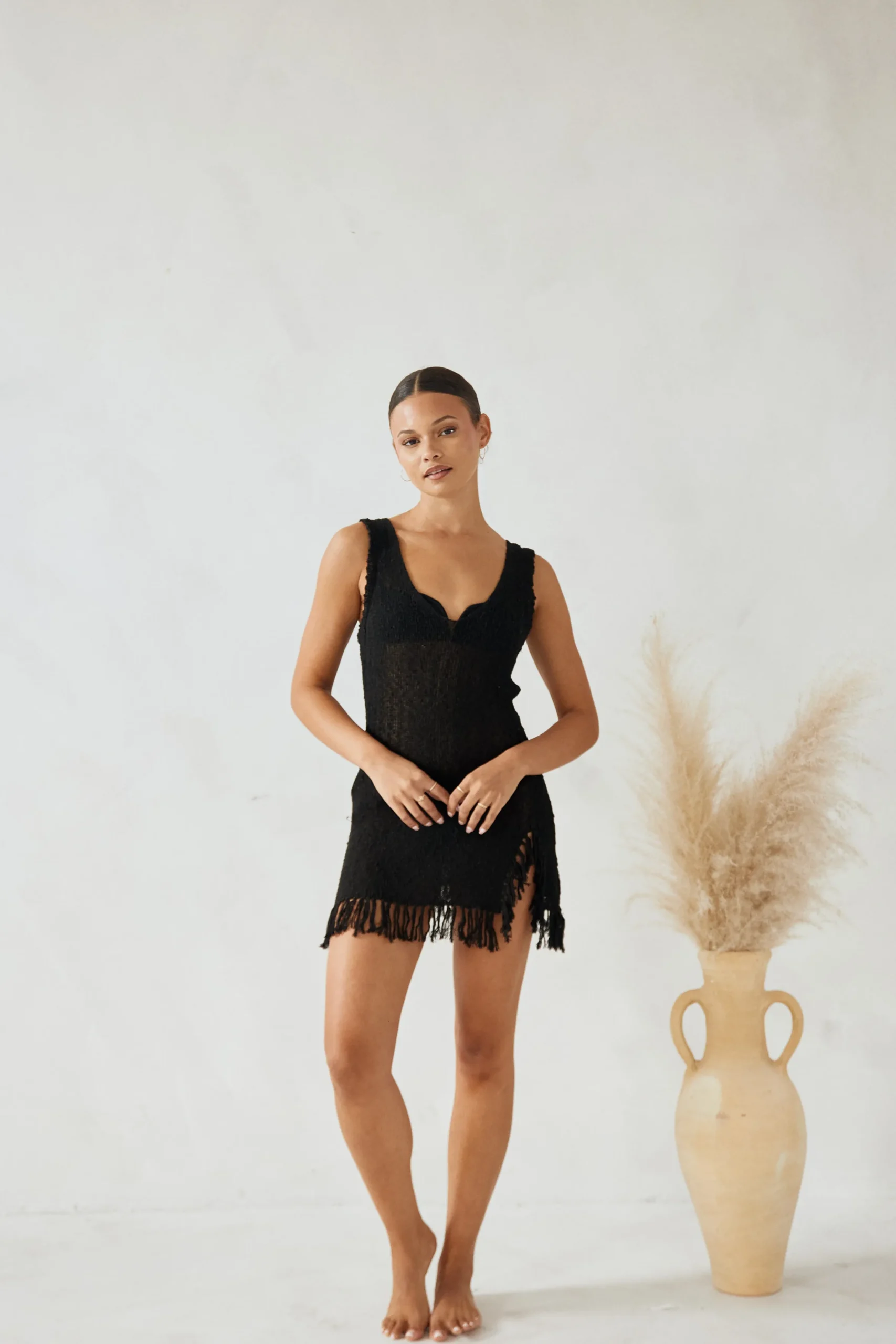 Get the look with the EmiliaCover Up, made from a luxurious texturedcottonfabric. Throw it over your bathing suit for the perfect poolside or beach cover up. It features a scoop neck front, split hemand tasseled bottom. It is a must have for your next trip!