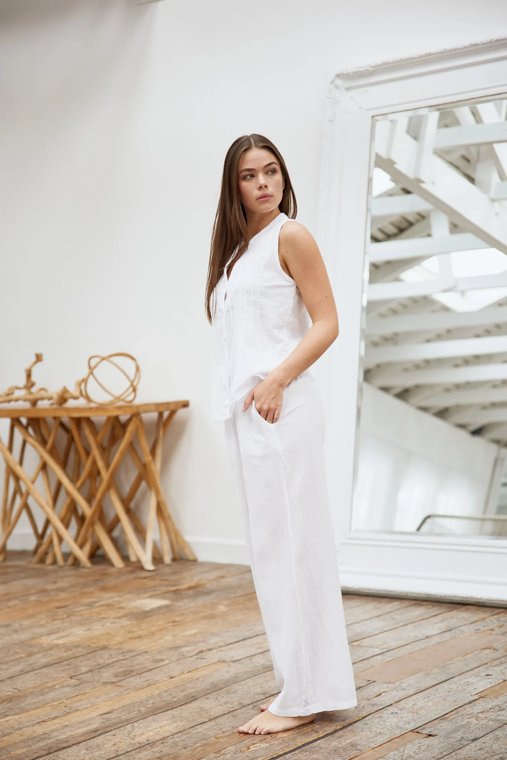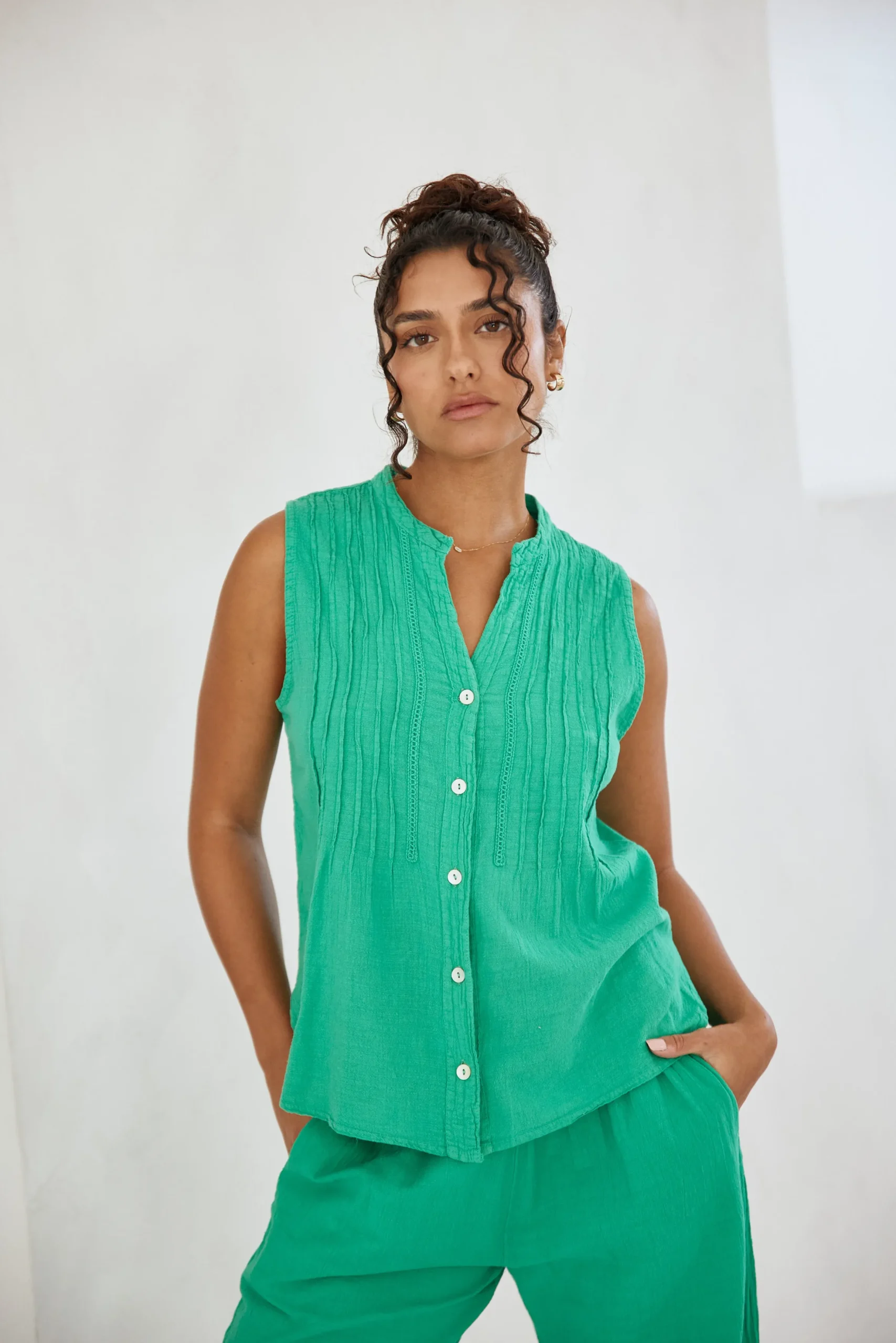 Simple and sophisticated, our Gigi Top is designed from a high quality cotton fabric. This button-down style features a relaxed fit with textured detailing. Complete this look with the Chiara Pants.