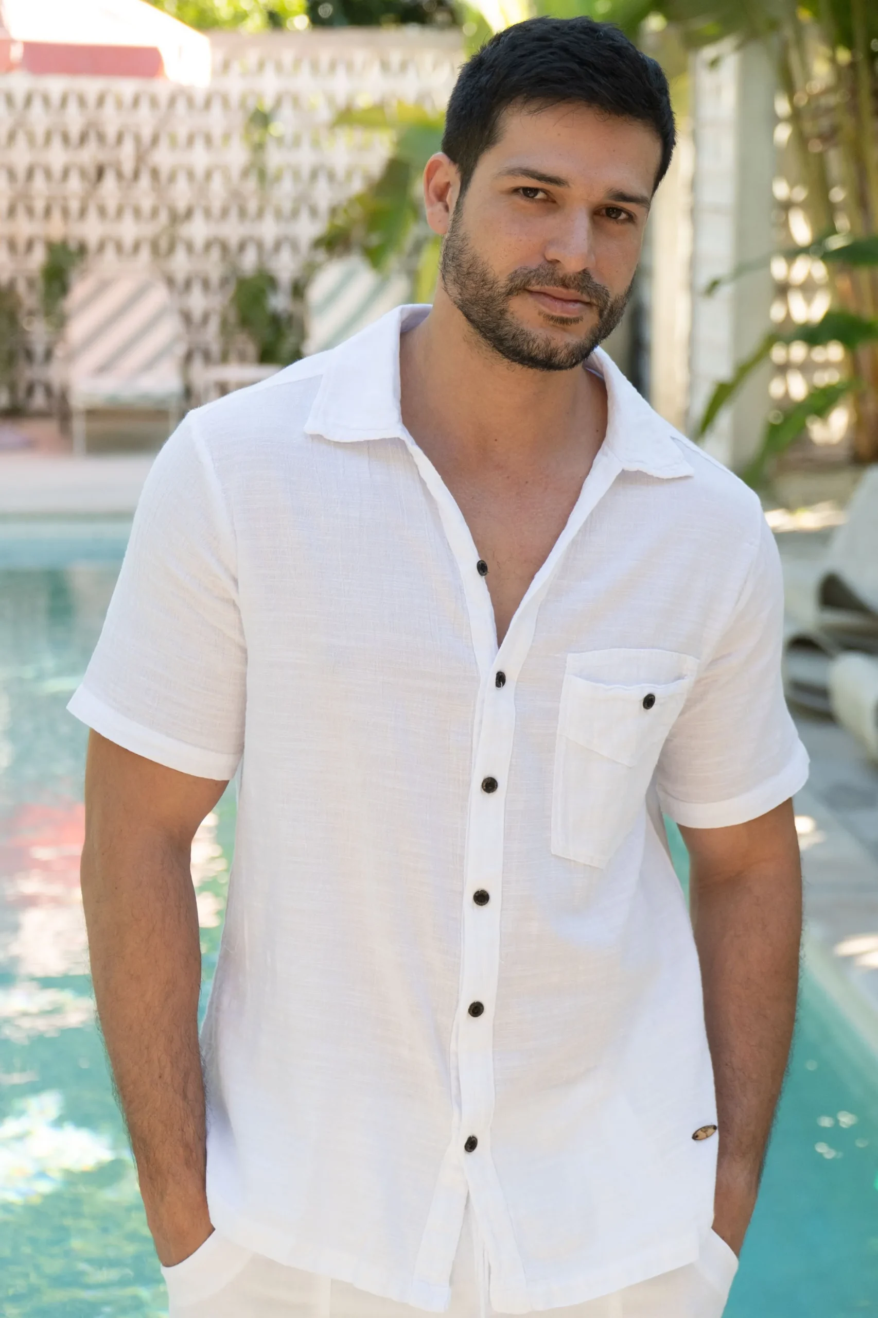 From the beach to the beach club. The Lino Button Down Shirt is made from a high quality cotton fabric and features a co…