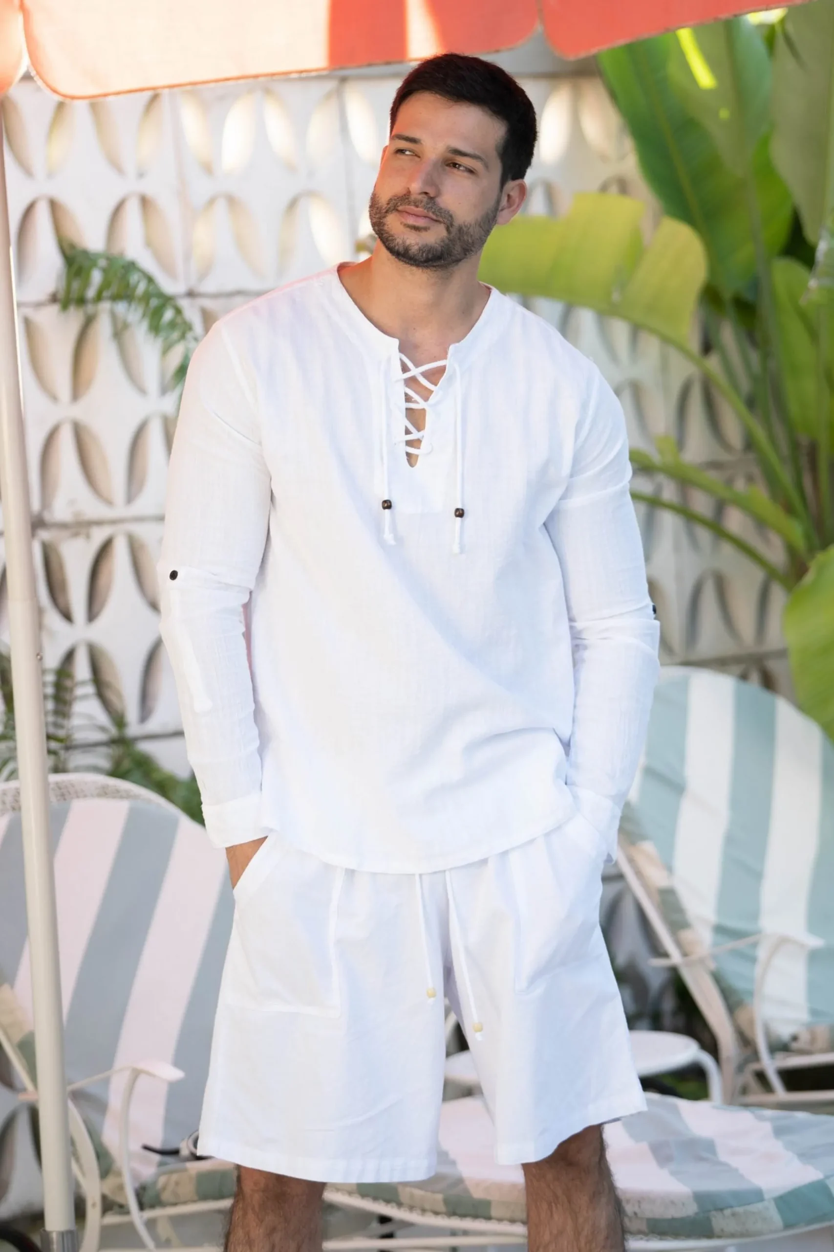 The Vero Classic Lace Shirt but make it long sleeve!The Milos Laced Long Sleeve Topis made from a high quality cotton fabric and featuresan adjustable coconut beaded lace front. Perfect for your next vacation!