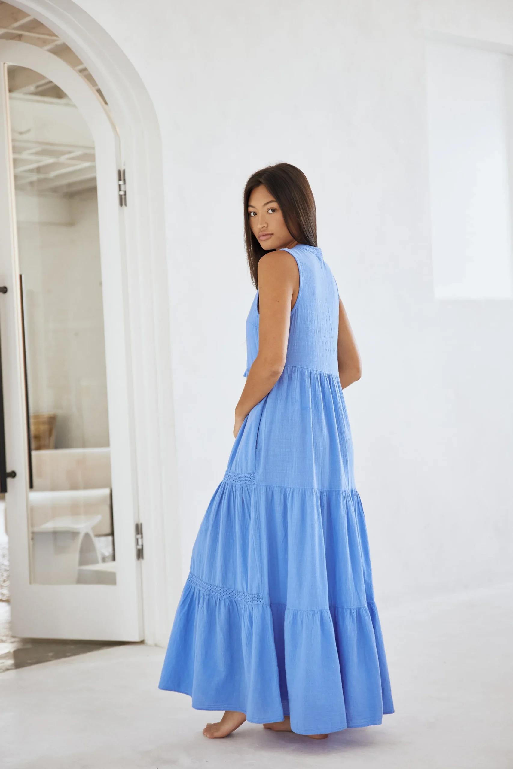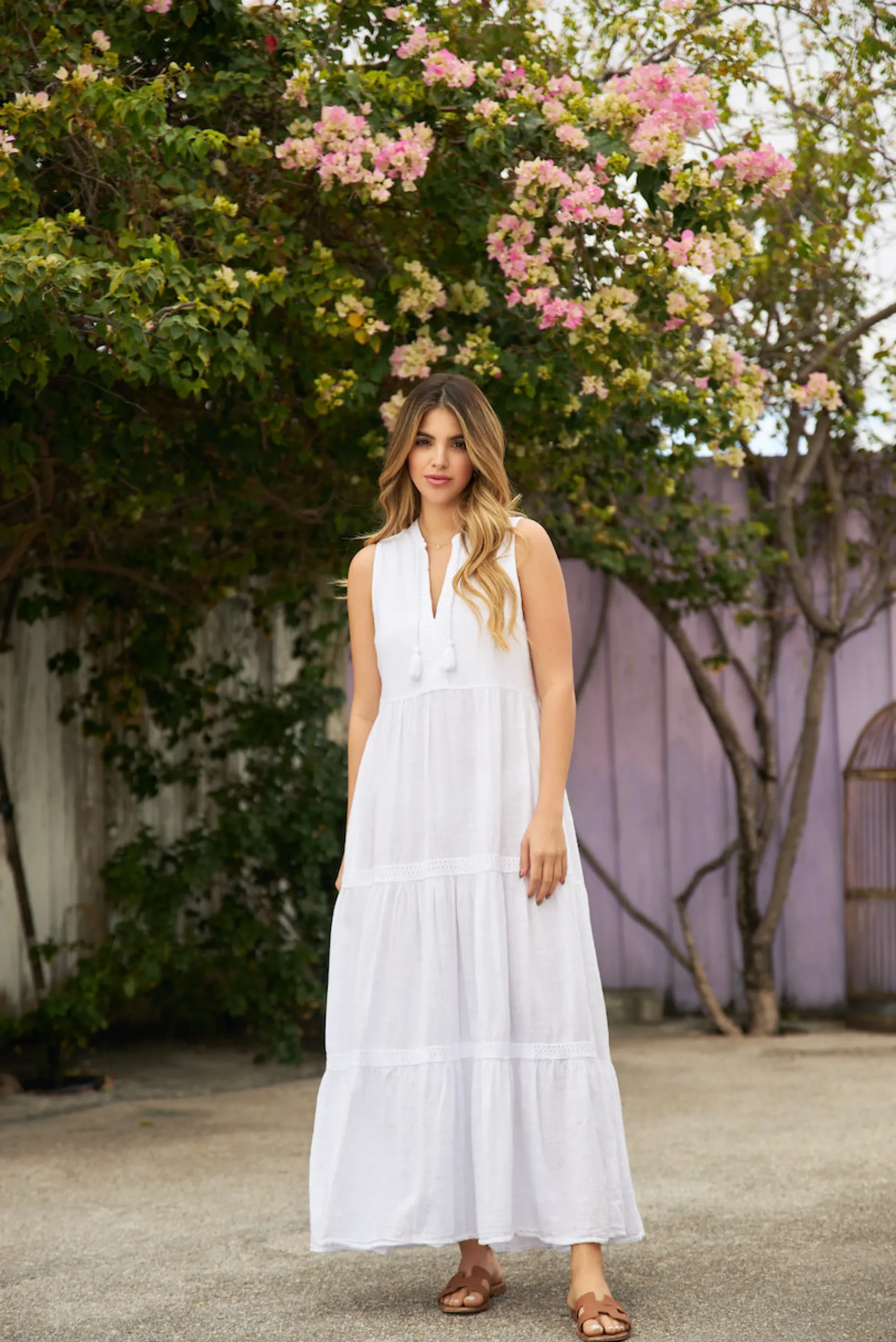 The most perfect dress for your sunny-day relaxation! The Naomi Dress is made from a high quality cotton fabric. This maxi style features a tiered design, a flowy silhouette, and front tassels. Paired best with a pair of sandals.
