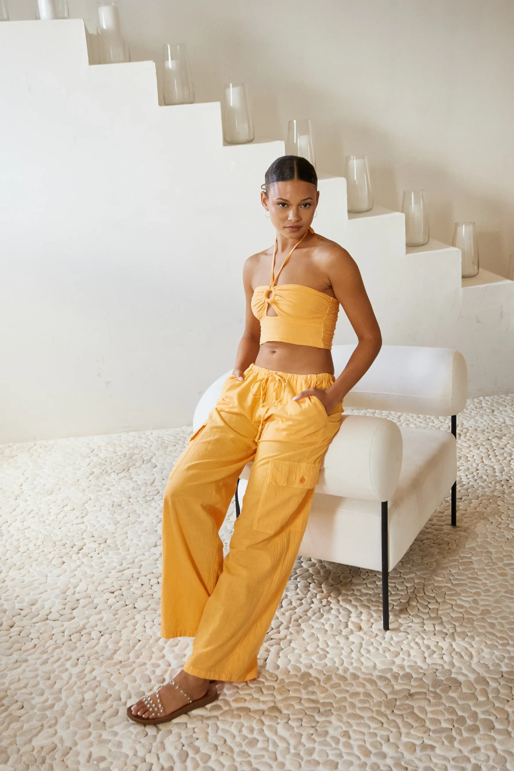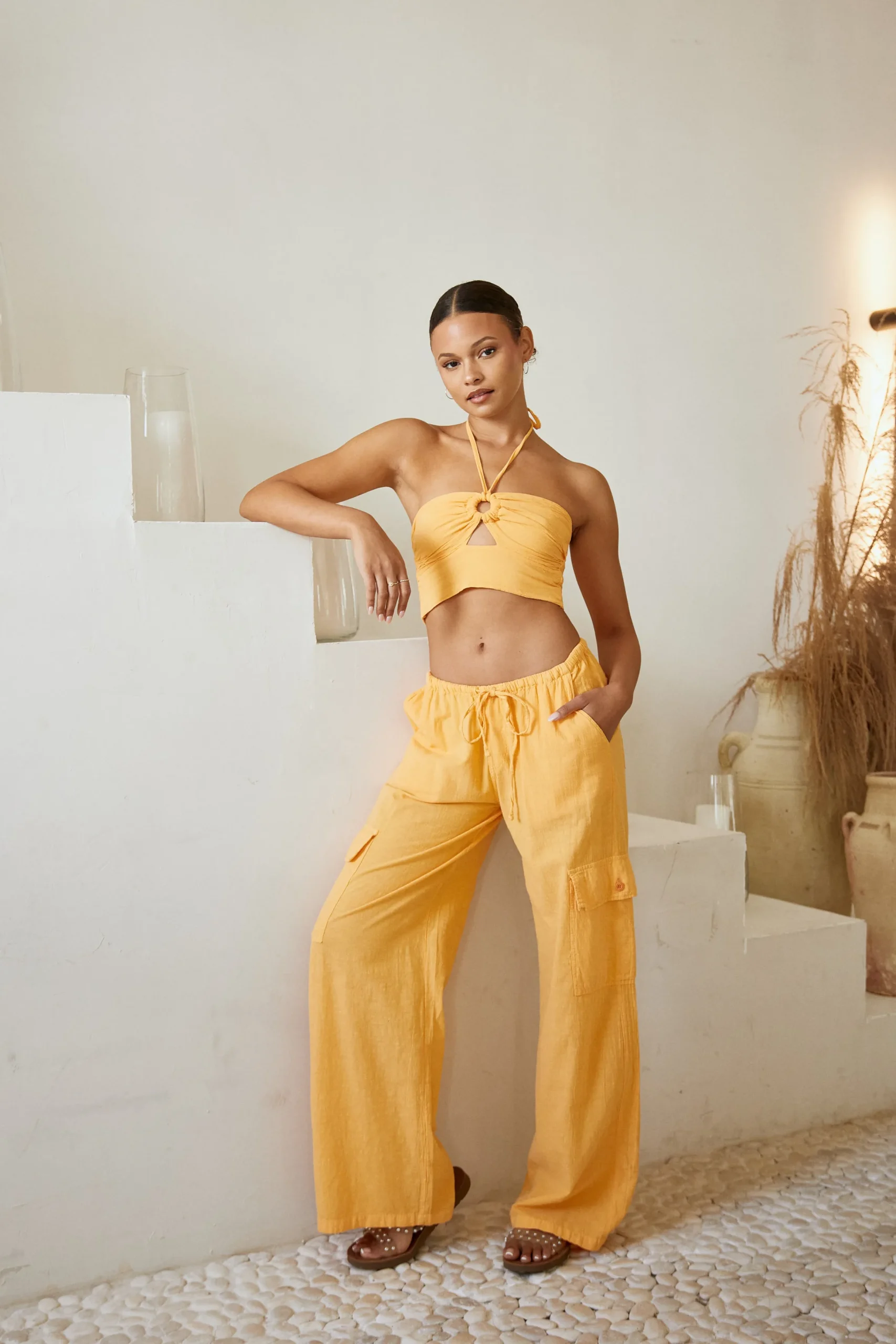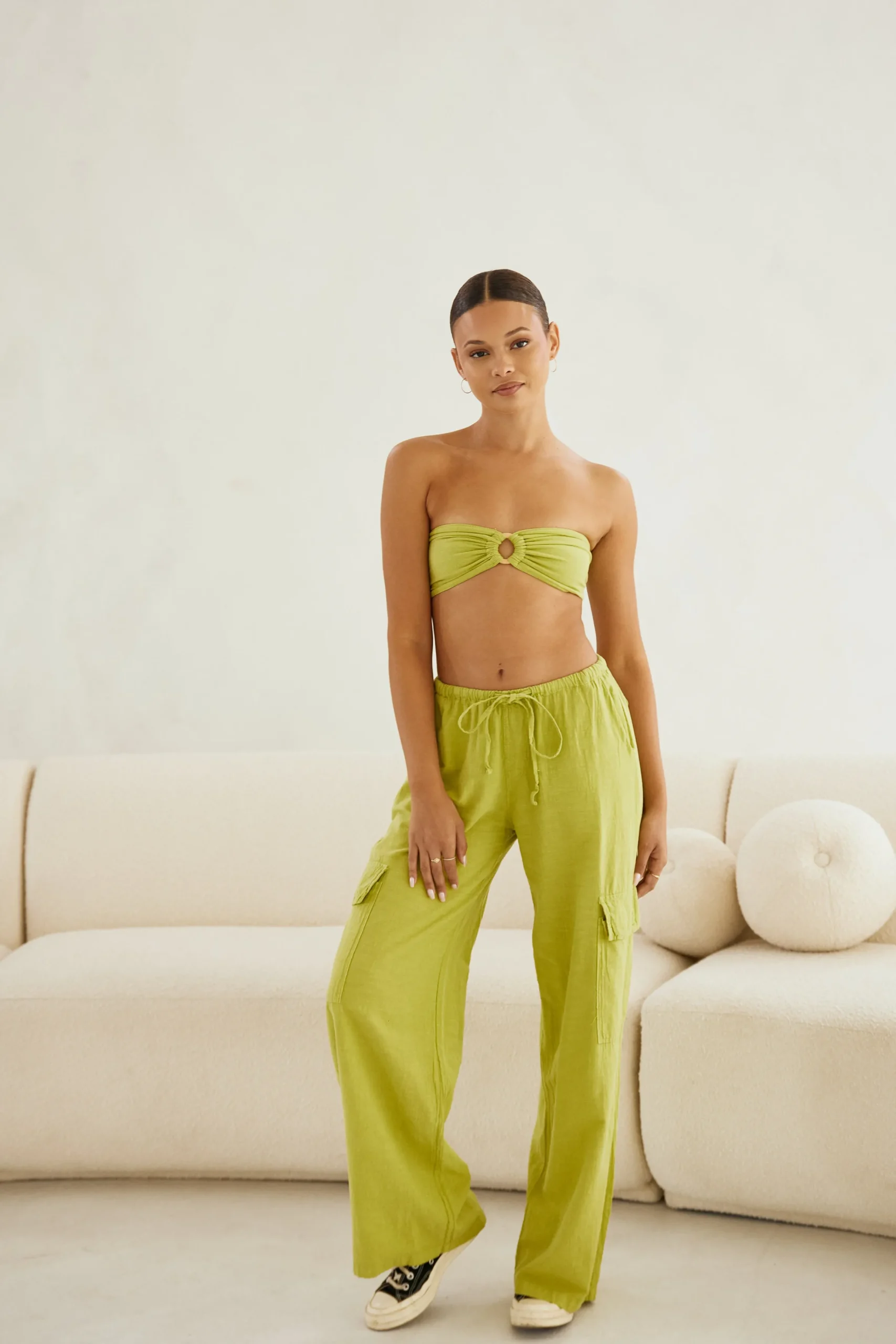 The perfect piece for an everyday vibe! The Paloma Cargo Pant is made from a high-quality cotton fabric. It is a drawstring style cargo pant featuring a regular waist with side pockets, utility pockets across the leg, and a straight fit. Complete the look with your favourite sneakers.